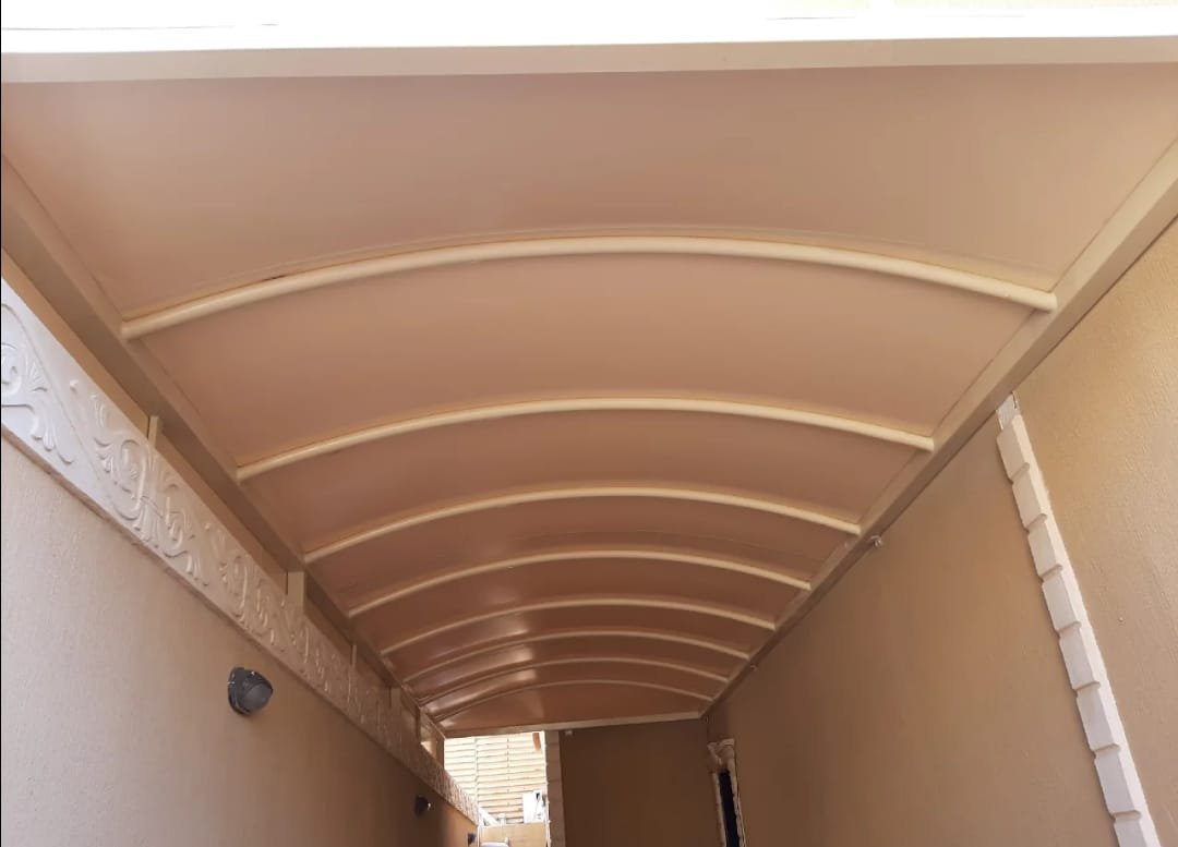 - مظلات اللكسان: مادة تشبه الزجاج لكنها غير قابلة للكسر، تسمح بمرور الضوء مع حجب الحرارة، وهي مثالية للمسابح والمداخل.