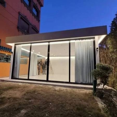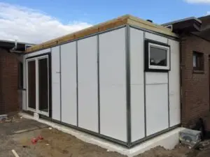 - العزل الاستثنائي: توفر ألواح الساندويتش بانل (التي تتكون من طبقتين من الصاج أو الألومنيوم بينهما عازل عالي الكثافة كالبولي يوريثان) عزلًا حراريًا وصوتيًا لا يُضاهى، مما يجعل الملحق موفرًا للطاقة ومريحًا على مدار العام.