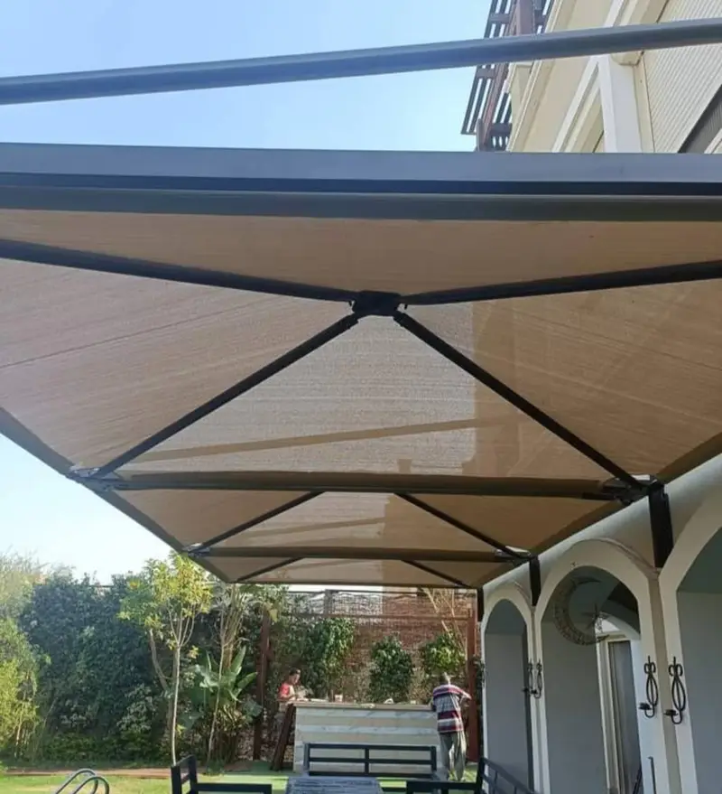 - تعدد الخيارات والجمالية: تتوفر بألوان متنوعة (أزرق، بيج، أخضر، رملي) وتصاميم عصرية (مقصية، هرمية، أو كابولي) تناسب الواجهات المعمارية الحديثة.