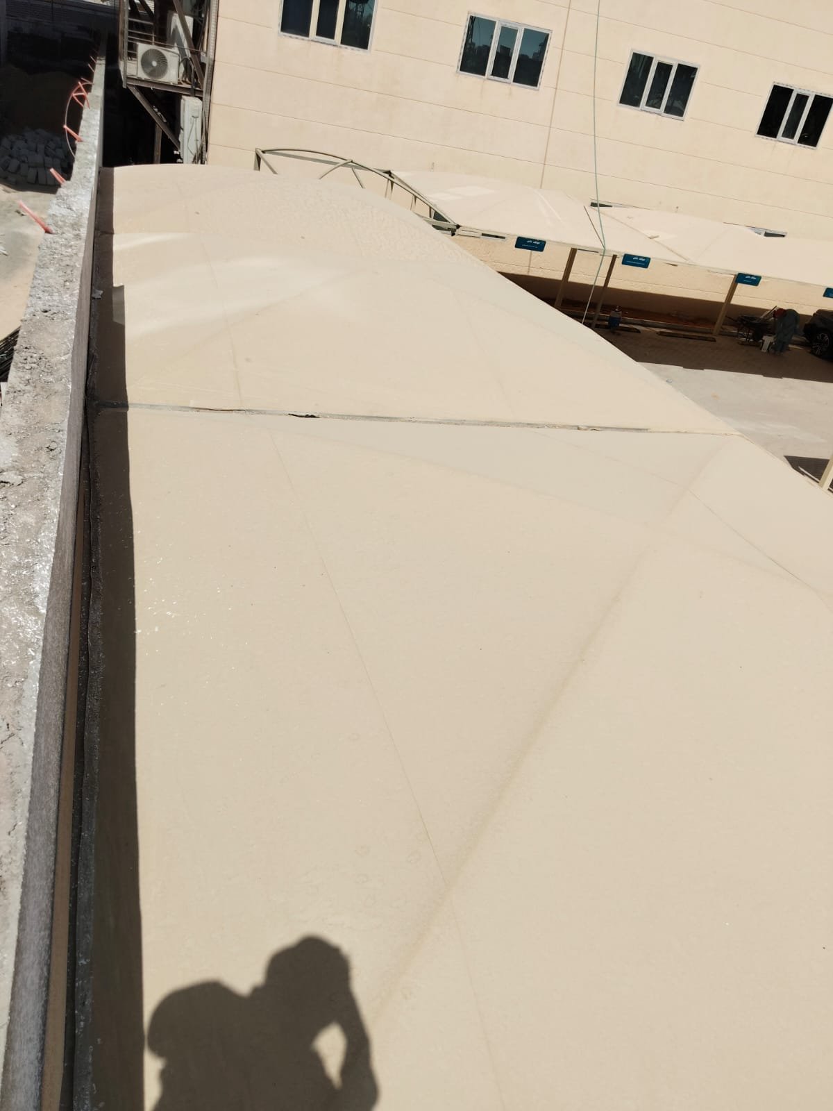 - تركيب الغطاء: شد القماش أو تثبيت ألواح اللكسان بدقة تمنع تسرب المياه أو تجمعها.