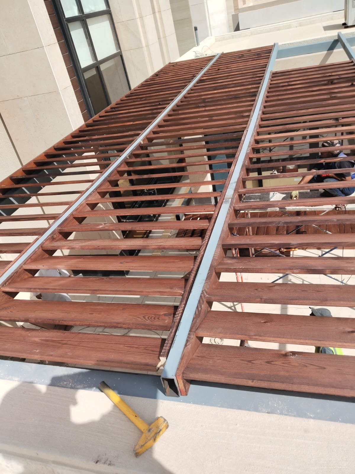 3. ​تغطية اللكسان: إضافة ألواح اللكسان فوق المظلات الحديدية للسماح بمرور الضوء ومنع المطر.