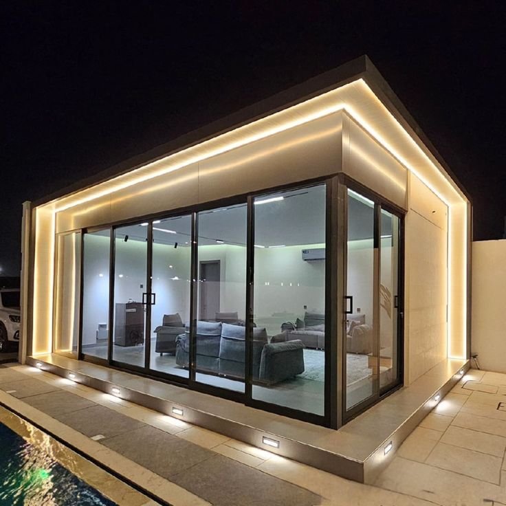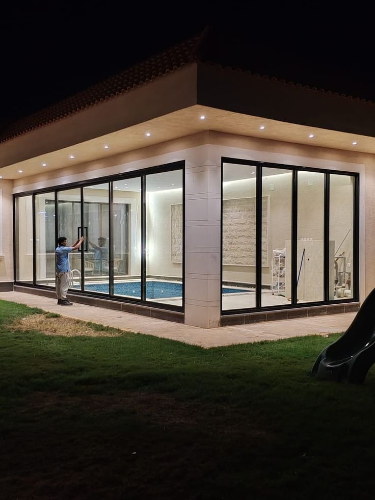 - التكامل مع اللاندسكيب: تصميم يدمج الملحق مع المسبح أو الحديقة بشكل انسيابي.