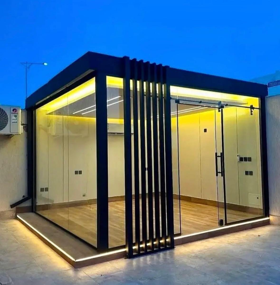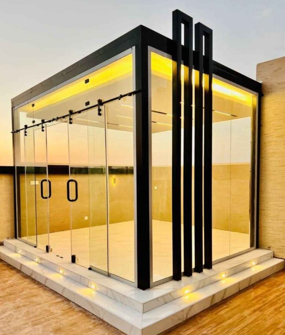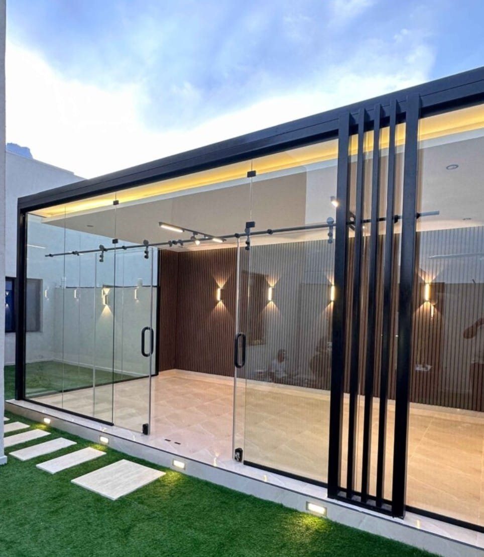 3. ✨ لمسة من الفخامة والعصرية: المجالس الزجاجية هي تجسيد للتصميم المعماري الحديث. بساطة الزجاج، مع أناقة الإطارات المصنوعة من الألمنيوم أو الفولاذ عالي الجودة، ترفع من القيمة الجمالية والعقارية للمنزل بشكل لافت.