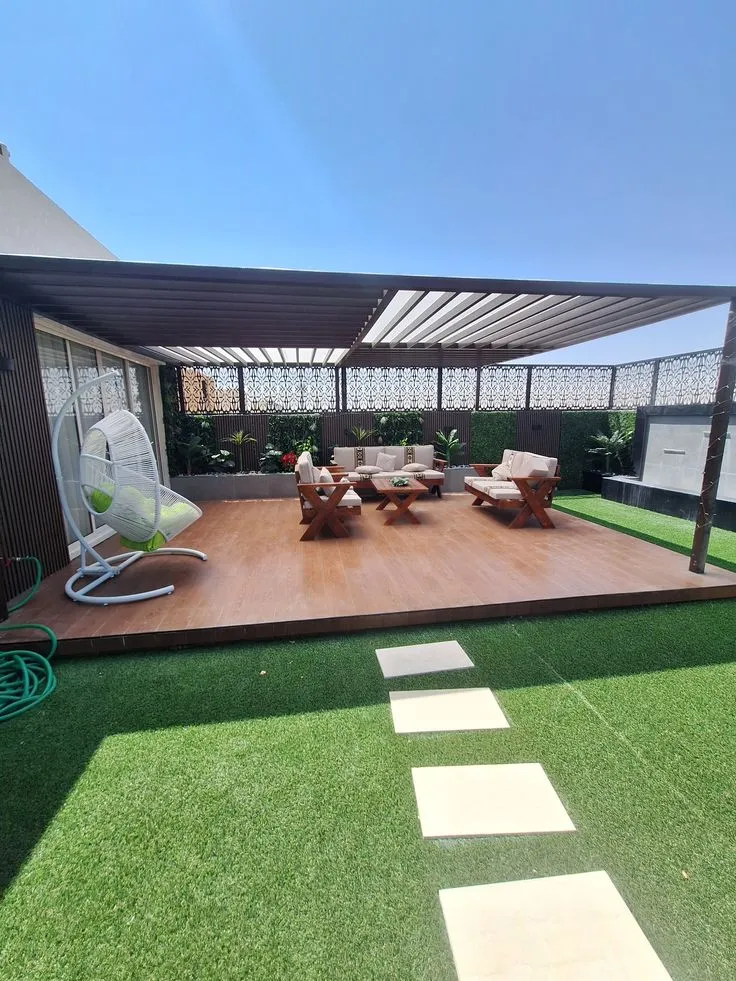 - تحديد المساحة: تفصل منطقة الجلوس والاسترخاء عن بقية الحديقة أو السطح، مما يخلق إحساسًا بالخصوصية.