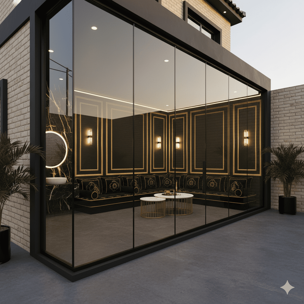 ​المجلس الخارجي هو واجهة الكرم والذوق الرفيع. الاتجاه الحالي يميل نحو المجالس المودرن أو النيوكلاسيك التي تدمج بين الحداثة والتراث.